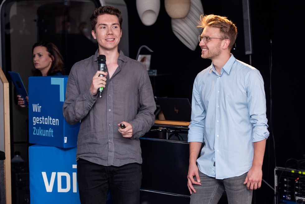 Der Designer Lukas Heintschel und der Elektroingenieur Kilian Klepper sind die Träger des dritten Preises. Ihre LED-Akkuleuchte „Neozoon“ lässt sich mit einem großen Befestigungssaugnapf an vielen Oberflächen anbringen, seien es Möbel, Türen oder Fenster- und Autoscheiben. Laudator Peter Pfeffer, Professor für Fahrzeugtechnik an der Hochschule München, nannte Neozoon „eine sehr pfiffige Lösung – ein Ingenieurskunstgriff mit Ikonenpotenzial. Einfach zu nutzen, spielerisch, charaktervoll. Kurz: So schön kann Technik sein.“