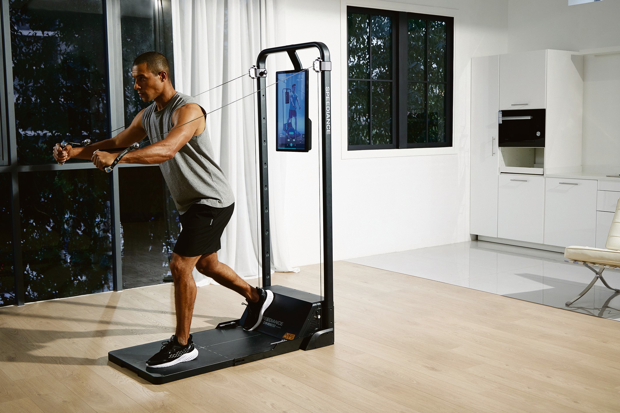 Gym Monster von Speediance ist ein kompakter Gerätepark auf kleinstem Raum. Zwei Motoren regulieren den Kraftwiderstand der einzelnen Stahlseile. Der Widerstand der Seile lässt sich in 500-g-Schritten auf bis zu 100 kg erhöhen, verspricht der Hersteller. So können sowohl Anfänger als auch Fitnessprofis das Training auf die eigenen Bedürfnisse abstimmen, ob der Schwerpunkt auf Cardio-Fitness oder Muskelaufbau gelegt wird. Über einen Touchscreen lassen sich über 200 Work-outs per Video abspielen. Sensoren erkennen, wenn Müdigkeit aufkommt. Das Gerät reguliert dann automatisch die Belastung. Das Kompaktpaket hat seinen Preis: 4599 €.
