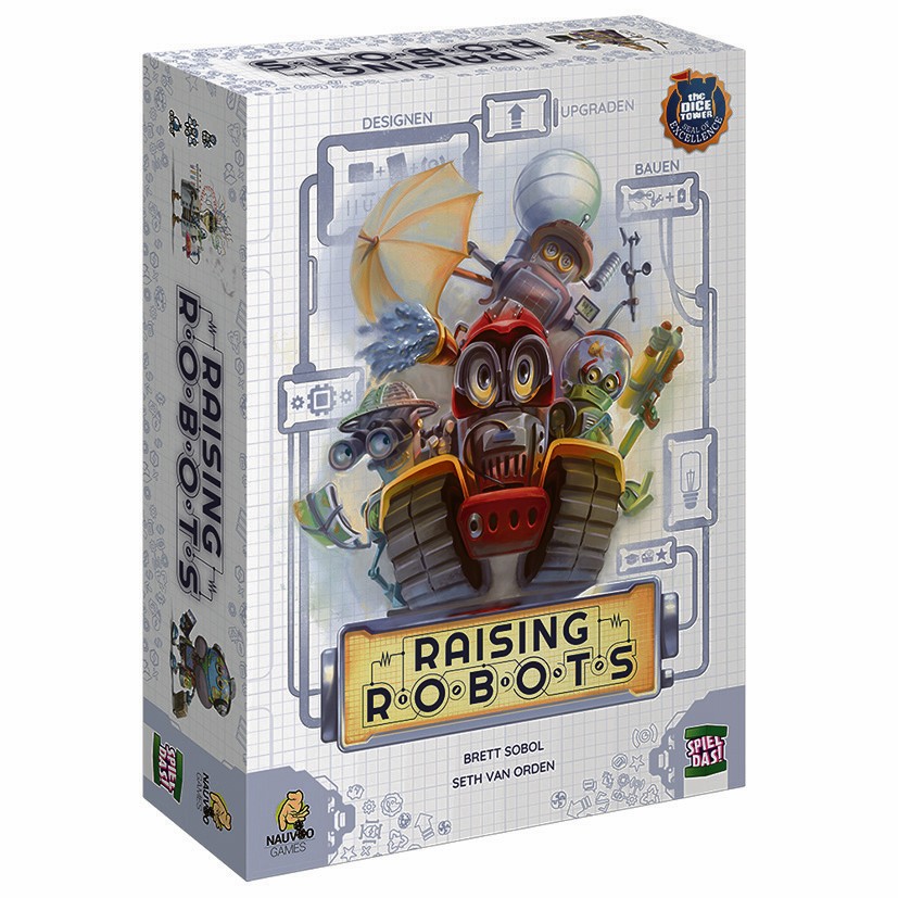 Beim kartenbasierten Strategiespiel „Raising Robots“ muss man Roboter in jeder Spielrunde durch geschickte Kettenreaktionen verbessern. Bei den Aktionen Entwerfen, Herstellen, Zusammenbauen, Aufrüsten und Recyceln muss klug die zur Verfügung stehende Energiemenge eingesetzt werden. Jeder Erfinder besitzt einzigartige Fähigkeiten, die ihm permanent im Spiel Vorteile bringen. Zudem kann er auch Bereiche seiner Werkstatt verbessern, um sich weitere Vorteile zu verschaffen. Rund 55 € verlangt dafür der Spiel Das! Brettspielverlag