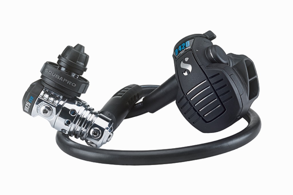 Mit dem Atemregler MK25 EVO/D420 hat Scubapro nicht nur eine schick gestaltete Schnittstelle zwischen dem Taucher und seinen Atemluftflaschen auf den Markt gebracht. Ein pneumatisch balanciertes Steuerventil soll den Luftstrom aus der Flasche so regeln, dass reichlich Luft mit einer Leichtigkeit fließt, die dem Atmen an der Oberfläche gleicht. Das schicke Design des Atemreglers ist durch die Kombination einer inneren Struktur aus Edelstahl und eines Gehäuses aus Nylon mit Glasfaserverstärkung möglich geworden. Der Preis: 780,00 €.