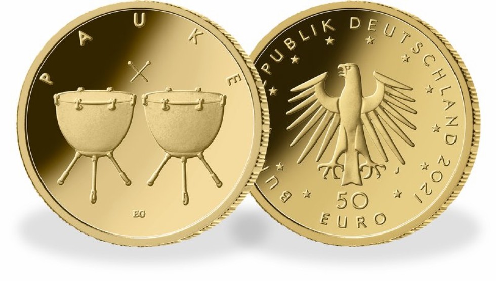 Die aktuellen 50-€-Prägungen sind thematisch unter dem Begriff „Musikinstrumente“ zusammengefasst. Diese Serie wird seit 2018 verausgabt und endet 2022 mit der Abbildung „Konzertgitarre“. Die 50-€-Münzen weisen ein Gewicht von 7,78 g und einen Durchmesser von 22 mm auf. Sie werden ebenso wie die anderen Goldmünzen der Bundesrepublik in Feingold (Au 999,9) geprägt. Die Ausgabe 2021 erfolgte mit 89 500 Stück.