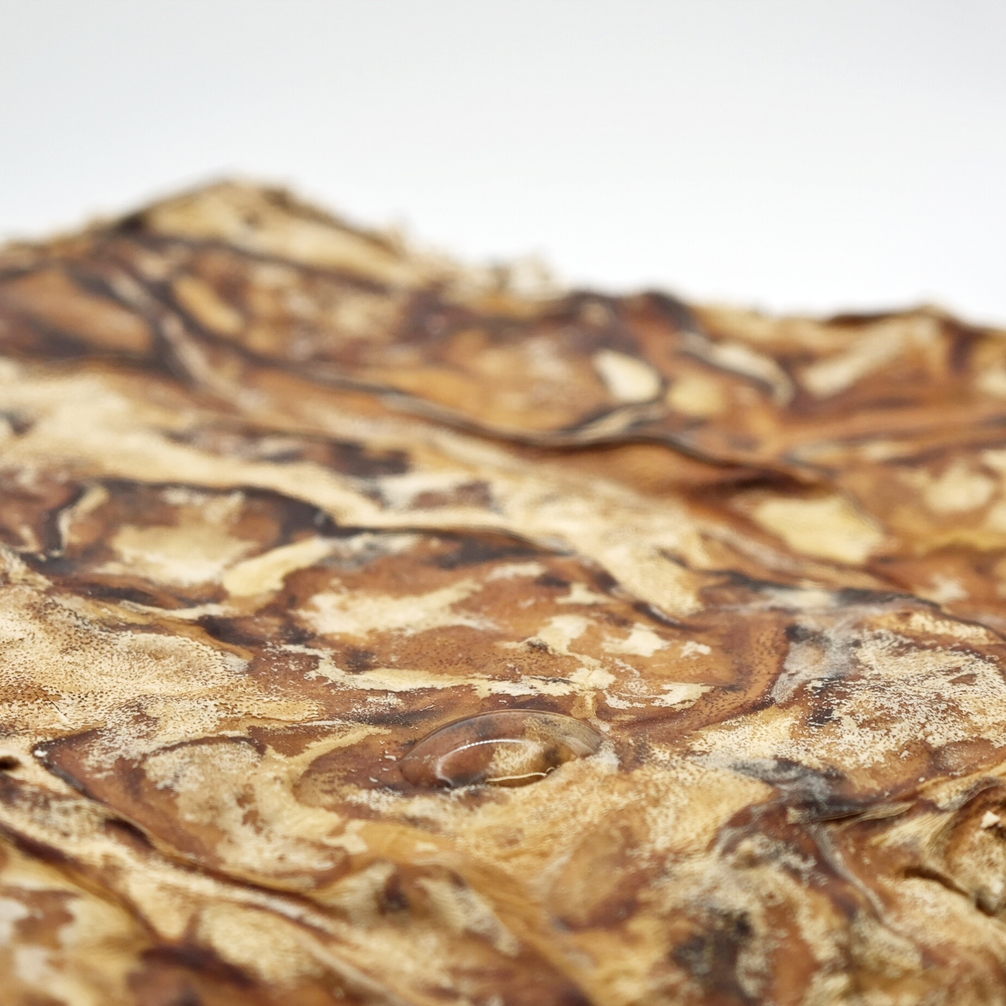 Nicht zuletzt sprechen ökologische Argumente für diesen Werkstoff. Während bei einer zerspanenden Herstellung durch Zuschnitt, Fräsen oder Bohren viel Abfall entsteht, ist es beim 3D-Druck von Pilzmyzel genau umgekehrt: Der druckbare Werkstoff basiert auf organischen Reststoffen; verarbeitet wird nur, was benötigt wird. Das Material ist völlig ungiftig, Speisepilzen vergleichbar und vollständig biologisch abbaubar.