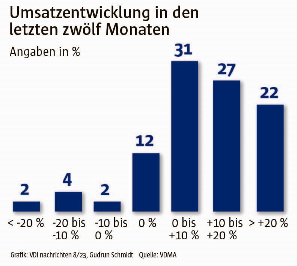 Der erwartete Boom ist doppelt bemerkenswert, denn er basiert auf einer erfreulich dynamischen Geschäftsentwicklung: 49 % der Befragten erklärten, ihre Umsätze schon in den letzten zwölf Monaten um mindestens 10 % gesteigert zu haben. Von denen gibt fast die Hälfte sogar ein Wachstum von über 20 % an. Umsatzrückgänge beklagen hingegen nur 8 % der Firmen.