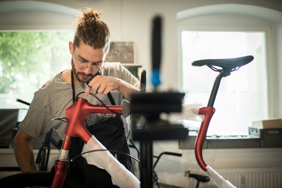 Aber nicht nur die Farbe ist individuell wählbar. Kaum ein Urwahn-Bike gleicht dem anderen. Denn Käufer werden zunächst nach ihren Fahrgewohnheiten befragt – und anschließend vermessen. So kann sich jeder, der zwischen 1,58 m und 2,05 m groß ist, seinen Drahtesel maßschneidern lassen. Und er kann aktuell wählen zwischen Citybike, Gravelbike und Rennmaschine. In der Pipeline sind außerdem bereits eine Cargo-Variante sowie ein S-Pedelec.