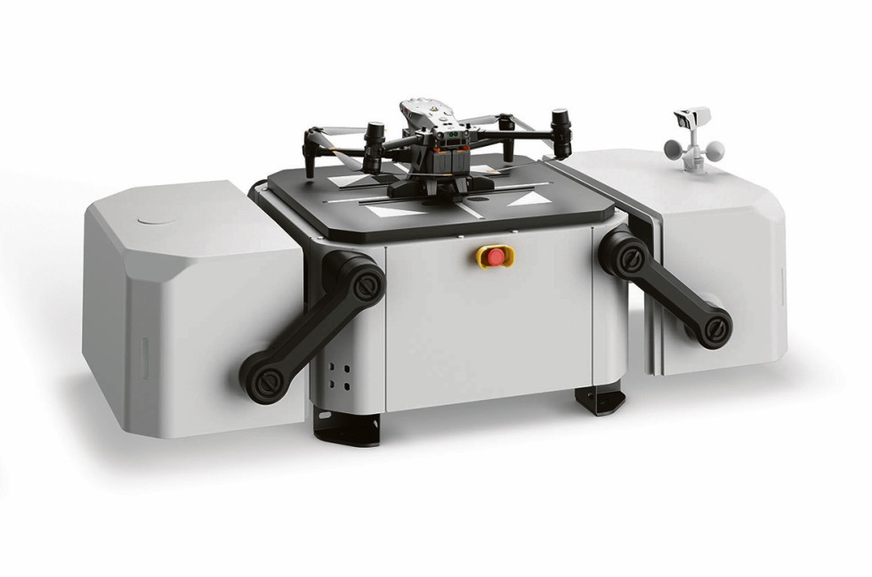 Eigens für die Industrie hat DJI das System DJI Dock entwickelt. In einer Box wartet die Drohne DJI Matrice 30 auf ihren Einsatz. Sie kann selbstständig vorher festgelegte Wegpunkte abfliegen und Daten sammeln, hochaufgelöste Fotos oder 3D-Scans anfertigen oder auch einen Video-Livestream senden. Selbst bei Wind, Regen oder Schnee öffnet sich die Klappe des Docks. Die Drohne kann laut Hersteller bis zu 41 min in der Luft bleiben und bis zu 7000 m hoch fliegen. Die Operatoren sitzen im bis zu 60 km entfernten Kontrollraum und lassen sich die Daten auf dem Monitor anzeigen. Der Preis ist entsprechend gesalzen: annähernd 26 000 €.