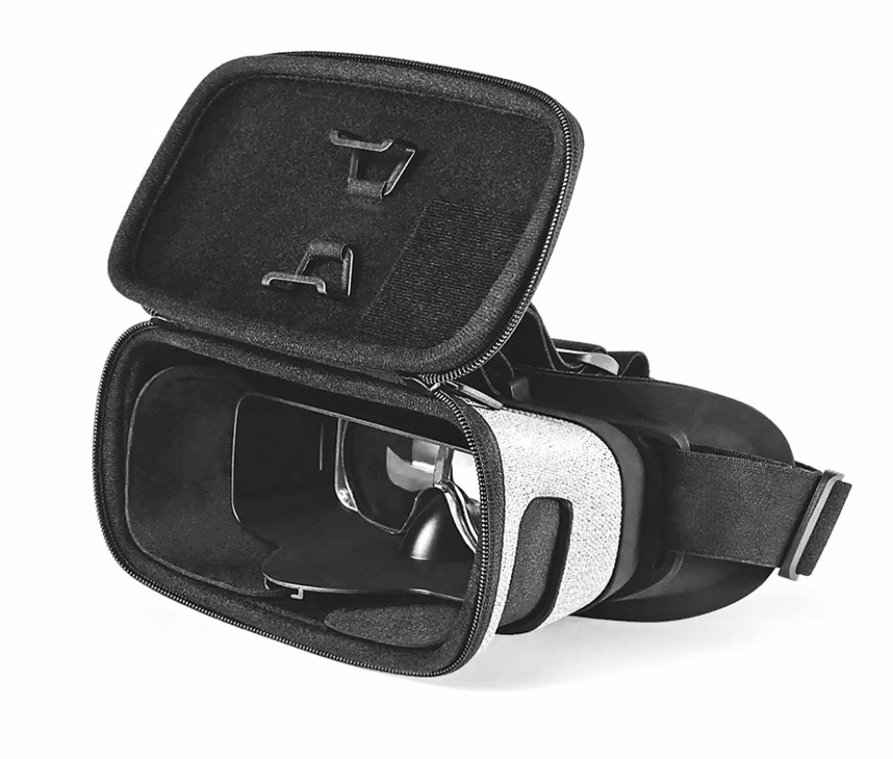 Wer den richtigen Bildausschnitt aus der Ich-Perspektive („First Person View“, FPV) mit geringem Budget finden möchte, kann auf eine Brillenalternative aus Norwegen zurückgreifen. In die Dronemask stecken Piloten ihr Smartphone, auf dem die Drohnen-App – und damit das Livebild der Kamera – läuft. Das Linsensystem vergrößert das Handydisplay ordentlich. Zwei separate Bilder für beide Augen anzuzeigen, wie lange üblich, ist nicht mehr nötig. Die Maske ist durchdacht konstruiert und aus hochwertigem Material. An den Seiten sind Einlässe für die Finger, für ein kurzes Bedienen des Handys. Der Abstand des Displays zu den Augen kann stufenlos verstellt werden und ist damit auch für Brillenträger geeignet. Preis: 166 €.
