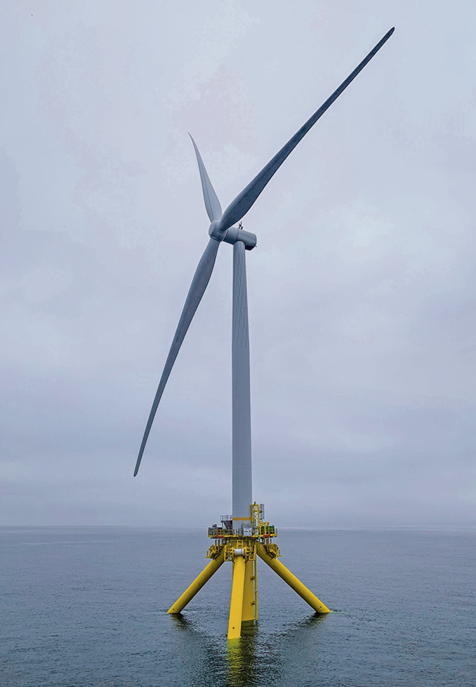 In den letzten Jahren hat es eine Vielzahl von Piloten gegeben. Schon 2018 zählte der Branchenverband Windeurope in Europa 13 davon. Aber in letzter Zeit mehren sich die Ankündigungen erster industriellen Projekte. Im Bild eine Anlage des Tetraspar-projekts (Shell, Tepco, RWE und Stiesdal) vor Norwegen: Rund 65 m taucht die Konstruktion für die 3,6-MW-Anlage mit 130 m Rotordurchmesser ein.