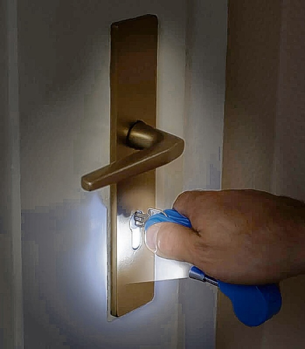 Nie wieder Probleme mit schwergängigen Türschlössern verspricht diese praktische Schlüsseldrehhilfe. Dank des stabilen und rutschfesten Kunststoffgriffs öffnet sich jede Tür wie im Handumdrehen, denn er verstärkt die Hebelwirkung selbst bei leichtem Drehen. Kaum größer als ein Taschenmesser nimmt die Drehhilfe bis zu drei Schlüssel auf und lässt sich problemlos in der Hosen- oder Manteltasche verstauen. Ein eingebautes LED-Licht sorgt außerdem dafür, dass das Schlüsselloch auch bei Dämmerung und in der Nacht gefunden wird. Lieferung inkl. Batterien. Preis: ab 9,95 €.