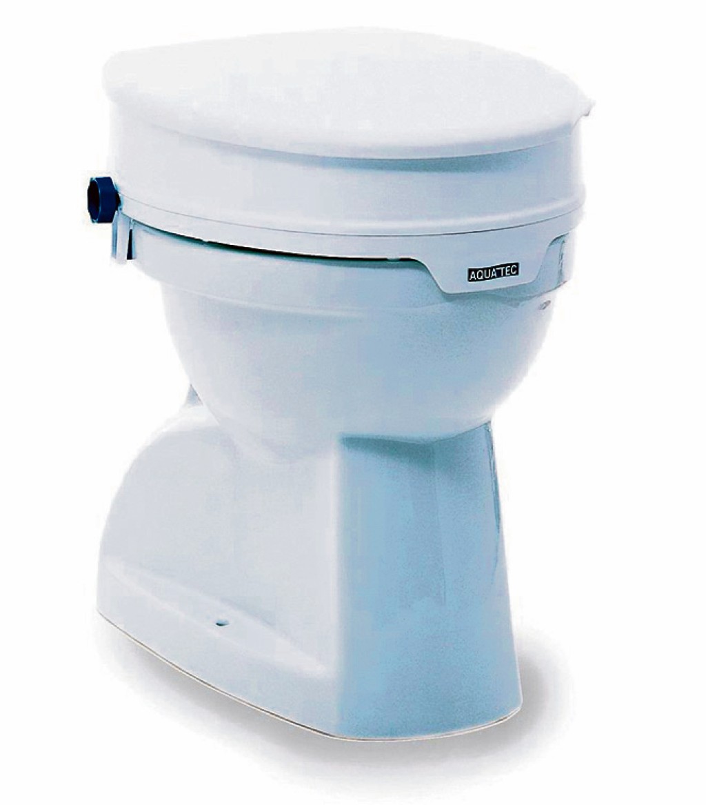 Manchmal sind ein paar Zentimeter entscheidend für Komfort und Sicherheit. Die Premium Aquatec Toilettensitzerhöhung A90 stockt den normalen Toilettensitz um 10 cm auf. Sie passt auf alle handelsüblichen WC-Schüsseln, die Montage erfolgt schnell und einfach über zwei seitliche Knebelschrauben und lässt sich bei Bedarf sogar ohne Werkzeug ab- und wieder anklipsen. Eine Plastiklippe hält die Sitzerhöhung vorne fest. Antirutschpads sorgen für den nötigen Halt. Bei einem Eigengewicht von nur 1,4 kg ist die Erhöhung mit 225 kg belastbar. Problemlose Reinigung und Desinfektion dank einer besonders glatten Oberfläche. Preis: ab 19,95 €.