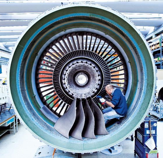 Vor diesem Hintergrund verwundert es nicht, dass Flugzeugbauer und ihre Zulieferer zu den ersten Anwendern additiver Fertigung gehören. Vorerst begründen Airbus und Boeing den Einsatz mit Gewichts- und Kostenvorteilen. Der 3D-Druck erlaubt ihnen bionische Konstruktionen mit dem Werkstoff Titan, die bis zu zwei Drittel Gewicht sparen und bisher nicht oder nur mit hohem Kosten- und Materialaufwand zu fertigen waren. Während solche additiv gefertigten Strukturbauteile im gesamten Flugzeug verteilt sind – bei Boeing sind es über alle Flugzeugtypen hinweg schon über 20 000 solcher Komponenten – setzen auch Triebwerkbauer verstärkt auf schichtende Verfahren. So realisiert GE Aviation Einspritzdüsen per 3D-Druck aus einem Teil, die bisher aus 30 Einzelteilen montiert werden mussten. Obendrein sind sie 25 % leichter und halten den hohen Temperaturen im Triebwerk besser stand.