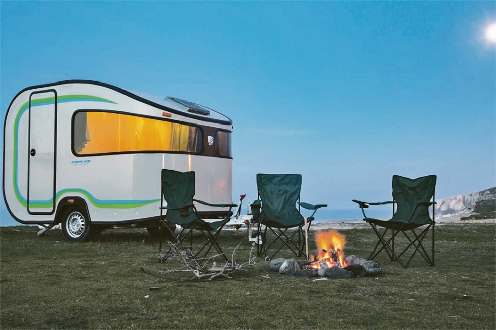 Kompaktes Design und geringes Gewicht zeichnen den Carpento 310 aus. Mit seinem maximalen Gesamtgewicht von 750 kg (opt. 1 t) und einem Leergewicht von 540 kg kann der 3,10 m lange Wohnwagen quasi hinter jedes Zugfahrzeug angespannt werden. Dennoch bietet das Fahrzeug überraschend viel Platz im Innenraum – ausreichend für zwei bis drei Personen. Komfortabel ist auch die Ausstattung: Küchenzeile mit einem Einflammkocher, Spüle sowie eine kleine Nasszelle mit WC, Waschbecken und Duschmöglichkeit. Die Sitzgruppe lässt sich zu einem Doppelbett (1,90 m x 1,30 m) umbauen. Der Preis: 15 890 €.