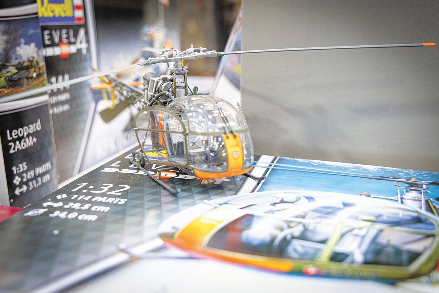 Warum nicht einmal ein Hubschraubermodell zusammenbauen? Für alle ab zwölf Jahren mit Modellbauerfahrungen eignet sich die Alouette II im Maßstab 1:32. Sie war einer der ersten seriengefertigten Hubschraubertypen mit einem Gasturbinentriebwerk und ist somit ein Meilenstein in der Luftfahrtgeschichte. 191 präzise gefertigte Teile müssen verbaut werden, damit ein 30 cm langes, beeindruckendes Modell entsteht. Selbst der drehbare Rotor hat einen Durchmesser von etwas mehr als 30 cm. Wie immer bei Revell liegen dem Bausatz eine detaillierte Bauanleitung sowie ein authentisches Abziehbild bei. Preis: 30 €.