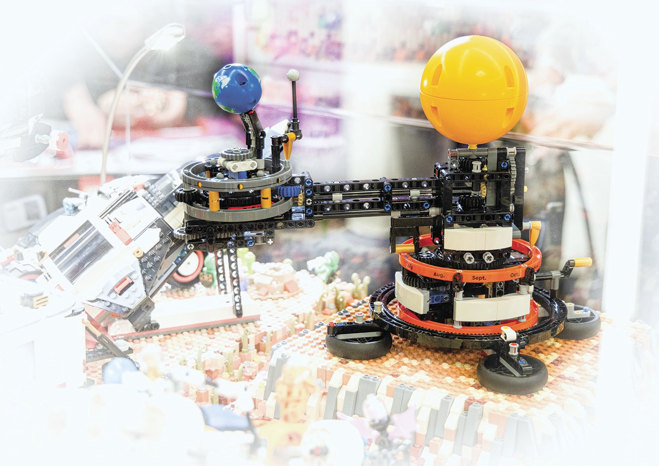 Wer Kindern ab zehn Jahren das Verhältnis zwischen Erde, Mond und Sonne sowie die jeweiligen Umlaufbahnen erklären möchte, kann dazu das „Technic Sonne Erde Mond Modell“ von Lego nutzen. Nach dem Zusammenbau der 526 Teile des interaktiven Sets kann man mittels einer Kurbel zeigen, wie Erde und Mond die Sonne umkreisen, also die Planetenbewegungen nachstellen. Auf diesem Modellausschnitt des Sonnensystems sind Details wie die Monate und die Mondphasen aufgedruckt. Damit wird anschaulich, wie sich die Umlaufbahn der Erde um die Sonne auf unsere Jahreszeiten auswirkt. Das Modell ist 24 cm hoch, 33 cm lang und 18 cm breit. Preis: 70 €.