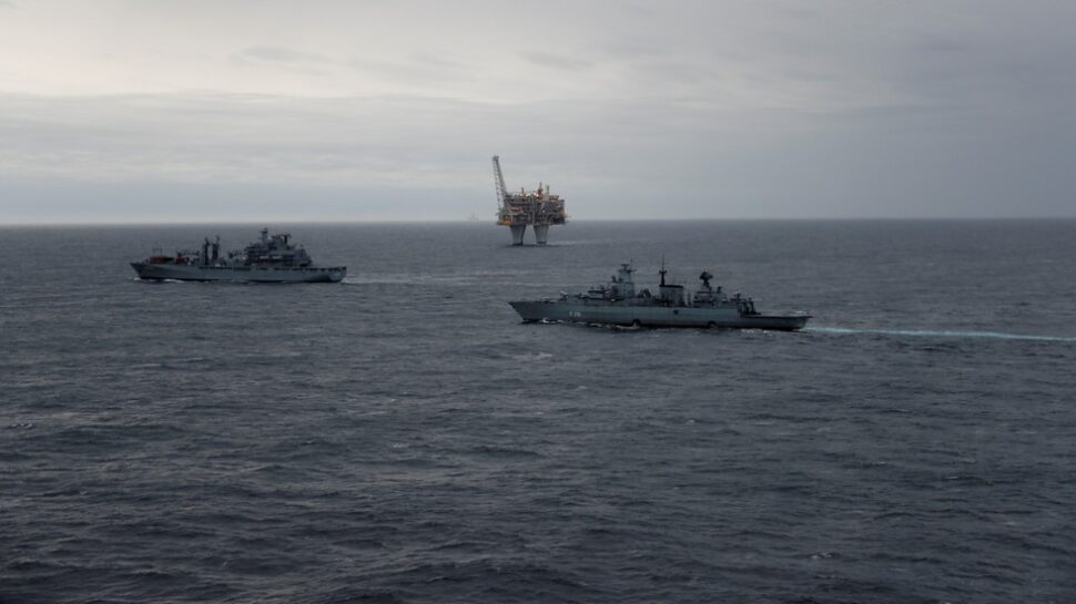Auf dem Weg in den „Nordflankenraum“ der Nato beobachteten die Marinesoldaten an Bord der deutschen Fregatten der Klasse 123 „Rheinland-Pfalz“, „Mecklenburg-Vorpommern“ und „Schleswig-Holstein“ das Meer diesmal noch aufmerksamer als sonst. In dem Seegebiet im Nordatlantik vor der norwegischen Westküste ragen zahlreiche Öl- und Gasförderplattformen aus dem Meer; unter Wasser verlaufen für die Energieversorgung Europas wichtige Leitungen.