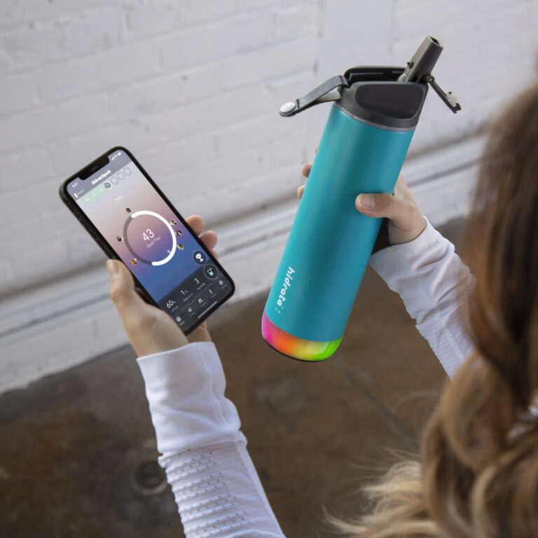 Wer zu wenig trinkt, wird mit Kopfschmerz und Konzentrationsschwäche bestraft. So weit muss es nicht kommen. Die intelligente Trinkflasche HidrateSpark PRO erinnert daran, regelmäßig zu trinken – und funkt die entsprechenden Infos auf Wunsch an alle gängigen Fitness-Apps von Fitbit über Garmin und Apple Health bis Google Fit. Die blinkende LED im Flaschenboden signalisiert zusätzlich, wenn eine Flüssigkeitsaufnahme angebracht wäre. Der Akku hält laut Hersteller zehn bis 14 Tage. Im Handel gibt es die isolierte Trinkflasche ab 69,95 €.