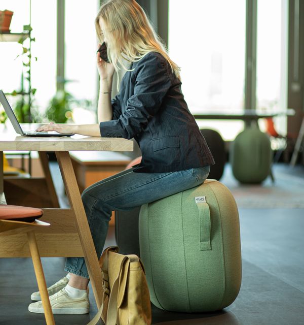 Und so verbessern Sie Ihre Körperhaltung am Arbeitsplatz: Durch eine gewollte Instabilität ermöglicht die Kapsul Stov der deutschen Marke Vluv ein aktives Sitzen. Der Polyesterstoff wirkt robust, ist aber weich. Eine Anti-Rutsch-Beschichtung auf der Standfläche sorgt für sicheren Halt und dank des eingebauten Bodengewichts gelangt die Kapsel immer wieder in ihre aufrechte Position, falls sie umkippt. Die Sitzhöhe kann je nach persönlichen Vorlieben und Luftdruck angepasst werden – belastbar ist die Kapsel bis 150 kg. Die Kapsul Stov wurde übrigens vom German Design Award 2024 mit Gold ausgezeichnet (149,90 €).