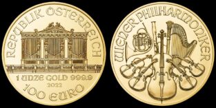 Der „Wiener Philharmoniker“ gehört weltweit zu den bekanntesten und beliebtesten Bullionmünzen. Dieser Begriff bezeichnet Münzen, die für die Geldanlage gedacht sind. Der „Wiener Philharmoniker“ weist einen Nennwert von 100 € auf und besitzt einen Feinanteil von 999,9/1000. Bei ihm treffen Werthaltigkeit und ästhetische Gestaltung der Anlagemünzen besonders vorteilhaft zusammen. Die seit 1989 ausgegebene Münze ist die meistverkaufte in Europa in dieser Anlageklasse.