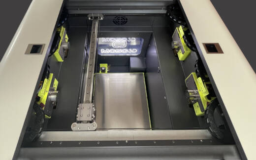 Wer per Schmelzschichtverfahren (FFF, Fused Filament Fabrication) mehrere Farben oder gar Materialien kombinieren will, erntet oft viele „Poops“. Das sind kleine verknotete Kunststoffwürste, die immer dann entstehen, wenn von Material A auf Material B gewechselt werden soll. Dann nämlich muss jeder Single Extruder einmal „durchgespült“ werden. Das heißt: Reste vom Material A müssen raus, Material B muss rein. Folge des Übergangs: Plastikmüll. Der ist leider niemals einfarbig und schlimmstenfalls nicht mal sortenrein. Kurzum: Das Recycling wird latent unmöglich. Abhilfe schaffen will das spanische Start-up Moso 3D aus Saragossa. Dessen Modell Moso MT setzt dabei auf eine Werkzeugwechsler-Technologie.