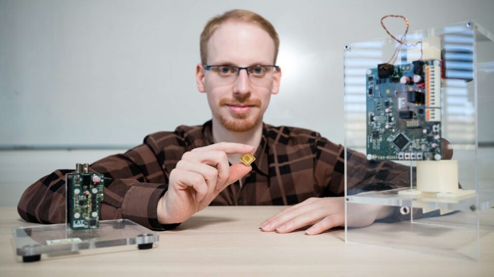 Entwickelt wurde das nachhaltige Verfahren von einer auf Antriebstechnik spezialisierten Forschungsgruppe um Matthias Nienhaus. Vor allem bei Systemen, die permanent Strom brauchen, um eine Position wie „auf“ oder „zu“ zu halten, kann es nach deren Einschätzung den Energiebedarf minimieren. Entscheidend für die Funktion sind ein magnetisch leitfähiger Metallbolzen in einer Spule aus gewickeltem Kupferdraht und ein kleiner Mikrochip: „Wir brauchen nichts Zusätzliches. Wir nutzen nur die Originalkomponenten eines einfachen Hubmagneten“, erklärt Nienhaus. Das mache die Technologie auch in rauer Umgebung einsatzfähig. „Hier kommen Systeme, die auf Sensoren angewiesen sind, oft an ihre Grenzen, etwa wenn Öl oder Bremsflüssigkeiten ins Spiel kommen“, sagt der Antriebstechniker.