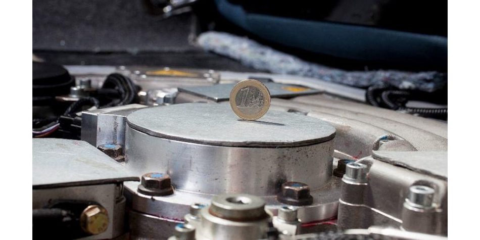 Wie eine Probefahrt der VDI nachrichten in Neckarsulm zeigte, läuft der Range Extender derart leise und vibrationsarm, dass man sein Zuschalten fast nicht wahrnimmt. Seine Leistung reicht selbst bei leerem Akku aus, um auf der Autobahn nicht zum Verkehrshindernis zu werden. „Selbst am steilen Aichelberg-Aufstieg stehen wir keinem LKW im Weg“, freut sich Jürgen Niehues, Referent Neue Antriebstechnologien bei KSPG, während der Fahrt auf der A 8 zwischen Stuttgart und München. Dann zelebriert er für uns den erwähnten Münzentest. Mit Erfolg: Der Euro dreht sich behutsam um seine Hochachse, aber er kippt nicht.