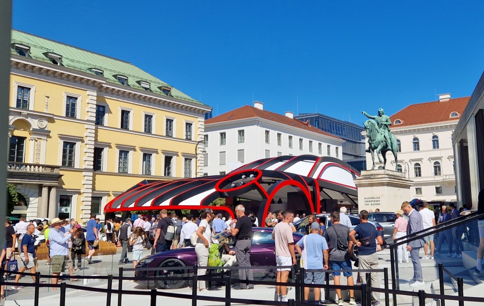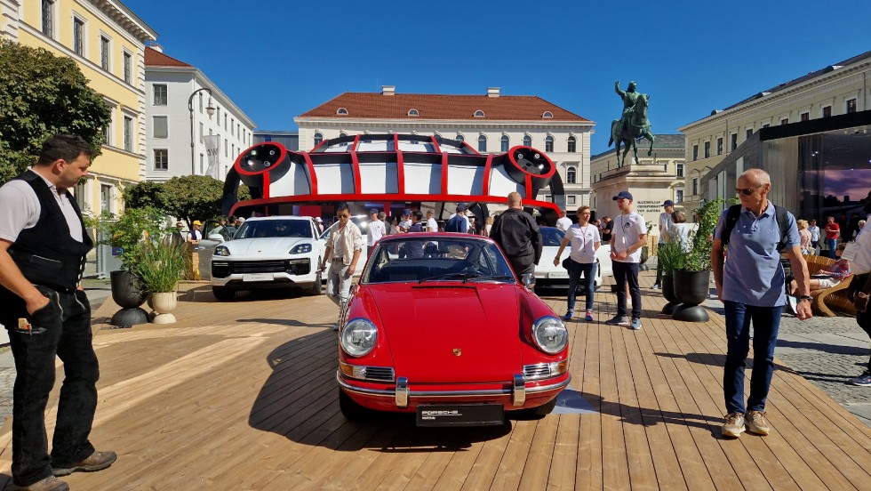 Präsentiert wird das limitierte Sondermodell den IAA-Besuchern jedoch nicht in den Messehallen, sondern auf dem frei zugänglichen Open-Space-Bereich der IAA in der Münchner Innenstadt (Wittelsbacherplatz) – unter einer 38 m langen, 15 m breiten und 7,50 m hohen Silhouettenskulptur eines 911. Zusammen mit seinem Urahn, einem frühen 901.