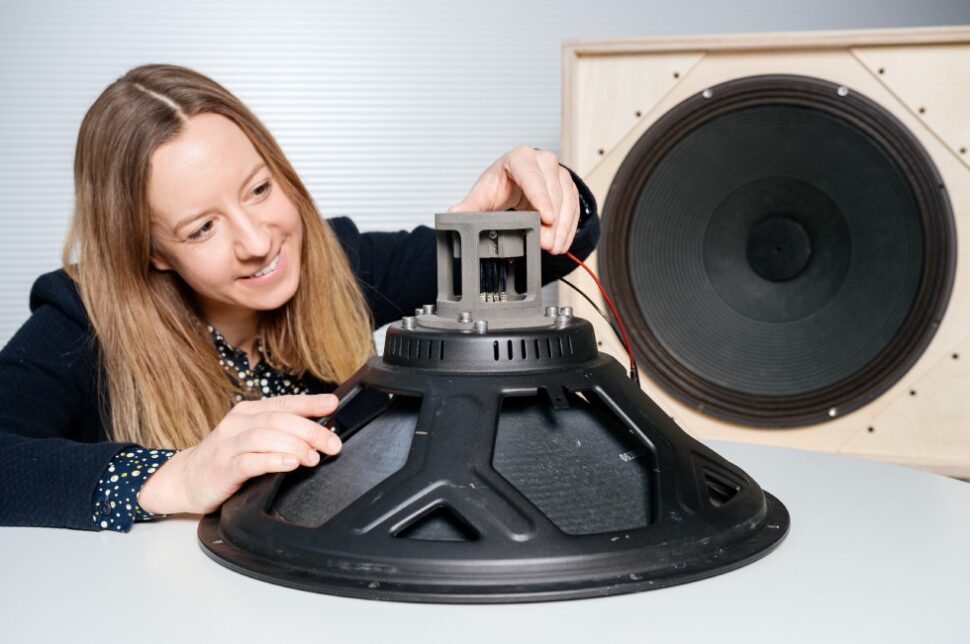 Abhilfe schaffen könnte eine Technologie, die Forschende der Universität des Saarlandes in Hannover vorstellen. Sie kommt ohne teure oder schwer verfügbare Materialien aus und benötigt neben einer intelligenten Ansteuerung lediglich Silikonfolie und Ruß. Mithilfe dieser Neuheit will das Team um Stefan Seelecke und Paul Motzki nachhaltigere Lautsprecher ermöglichen. Statt Kupferdrahtspule und Magnet sorgt dann eine dünne Silikonfolie im Lautsprecher für die Bewegung der Membran. Dieses Materialsystem aus dielektrischen Elastomeren kann mit vergleichsweise wenig elektrischer Leistung stufenlose Hubbewegungen ausführen. Somit ist der Antrieb für einen dynamischen Lautsprecher gegeben. Beim Einsatz in dynamischen Lautsprechern wird die Folie gerollt und ersetzt so die konventionelle Schwingspule. „Mit unseren intelligenten Materialsystemen aus dielektrischen Elastomeren lässt sich im Bereich der Akustik vieles neu denken. Mit ihnen könnte die Lautsprechertechnik mit Blick auf mehr Nachhaltigkeit weiter verbessert und weiterentwickelt werden“, sagt Stefan Seelecke vom Lehrstuhl für intelligente Materialsysteme der Universität des Saarlandes und am Saarbrücker Zentrum für Mechatronik und Automatisierungstechnik Zema.