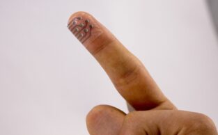 Bedingt funktioniert das zwar bereits heute. Etwa durch in den Händen gehaltene Controller, die durch bewegliche Teile wie Motoren haptische Eindrücke erzeugen. Oder auch mithilfe von speziellen Handschuhen, in die ebenfalls vibrierende und anderweitig bewegliche Elemente eingebaut sind. Ein wirklich überzeugendes Erlebnis für den Tastsinn bieten diese Optionen jedoch nicht. Das will Steimle ändern und hat im Rahmen des gleichnamigen Projekts „Tacttoo“ entwickelt. Dabei handelt es sich um eine hauchdünne, nur 35 μm dicke elektronische Folie. Sie wird wie ein Abziehtattoo auf die Haut aufgetragen und kann dort den Tastsinn stimulieren. Das funktioniert ausschließlich durch elektrische Reize und ganz ohne bewegliche Teile.