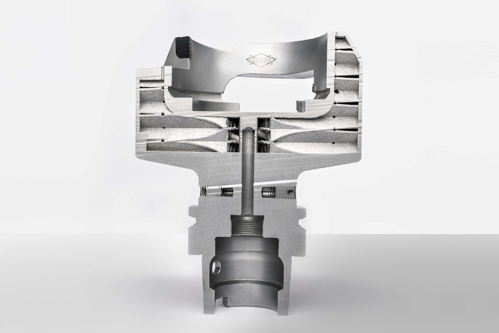 Zu den Anwendern des 3D-Drucks im Werkzeugbau zählt die Mapal Präzisionswerkzeuge Dr. Kress AG. Das Unternehmen aus Aalen bei Stuttgart hat ein neuartiges Glockenwerkzeug für das Fräsen von Schlauchanschlüssen realisiert. Im Rahmen einer hybriden Fertigung wurde die neue Werkzeuggeometrie auf einen Grundkörper mit einer HSK-63-Schnittstelle gedruckt. Die Besonderheit: Im Inneren des Werkzeugs findet sich eine speziell ausgelegte Wabenstruktur – kein Vollmaterial. Dadurch ist das Werkzeug um 30 % leichter. Und durch die dämpfende Wirkung der Struktur erhöht sich – so Mapal – die Standzeit um circa 40 %. Zerspaner könnten das Werkzeug mit höheren Schnittdaten nutzen, ohne dass die Bearbeitungsqualität leide. So ließe sich die Bearbeitungszeit im Vergleich zum klassischen Werkzeug um 50 % senken.