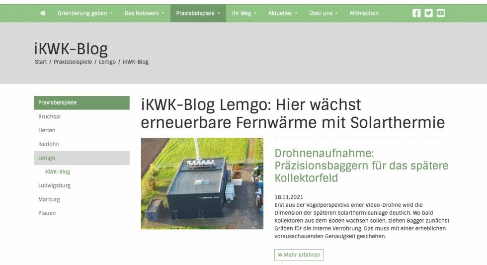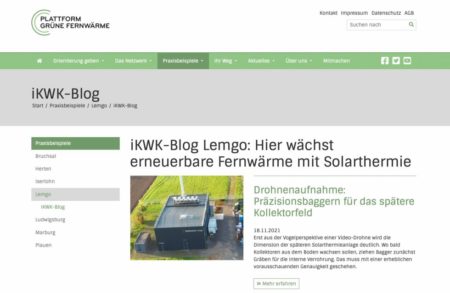 Der Blog wird laufend aktualisiert in der Art eines Onlinebautagebuches. „Wir sind sehr dankbar, dass die Stadtwerke Lemgo bereit sind, auf diese anschauliche Weise ihre Erfahrungen mit der Fachöffentlichkeit zu teilen“, sagt Huther, Leiter für Forschung und Entwicklung beim AGFW.