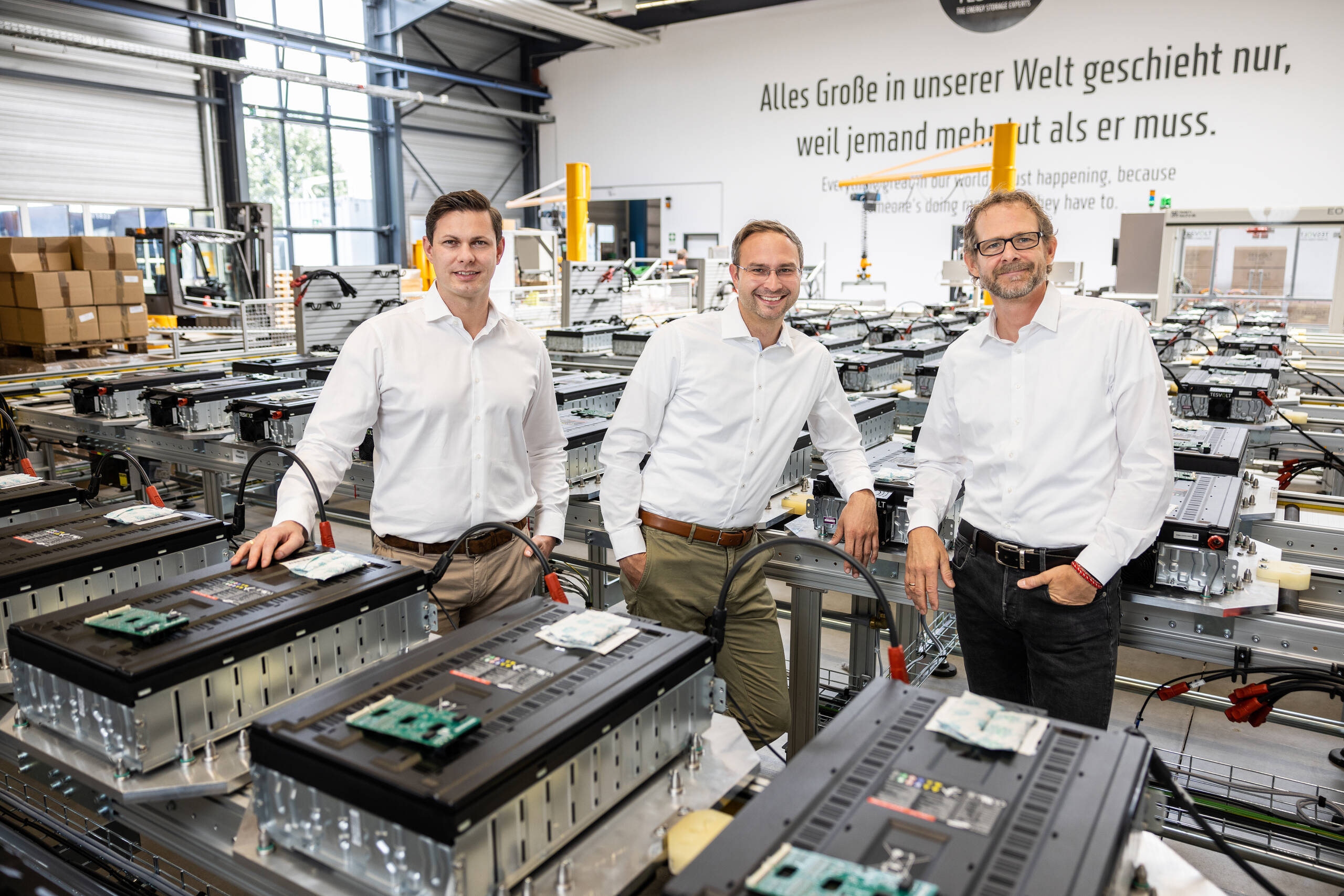 Hannemanns Kompagnon Simon Schandert hat als CTO eher den Blick für das Technische, sei es die Digitalisierung im Unternehmen – oder auch die Herstellprozesse in der neuen Fabrik. „Im Gegensatz zu vielen anderen Herstellern beträgt unsere Entwicklungszeit für ein Produkt tendenziell ein bis zwei Jahre anstelle von drei bis fünf Jahren, was bedeutet, dass Effizienz für uns an erster Stelle steht“, sagte er unserer Kollegin Alexandra Ilina. Das neue zweistöckige Fertigungsgebäude ermöglicht laut Tesvolt eine hochautomatisierte, effiziente Fertigung von Batteriespeichersystemen mit einem sehr hohen Digitalisierungsgrad, Voll automatisierte Roboter werden in Teilen des Fertigungsprozesses integriert sein.