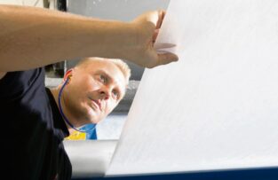 Meltblown-Vlies für Masken geht von Troisdorf aus in die ganze Welt. Auch wenn eine medizinische Maske einfach aussieht, ihre Fertigung ist nicht trivial. Die Maschinen müssen voll automatisiert mit hohen Taktzahlen laufen. Die Kunst liegt im Verschweißen des Vlieses, aber auch in der späteren Weiterverarbeitung. Denn die Masken kommen in hoher Geschwindigkeit aus der Maschine und müssen ebenso schnell verpackt werden – und das unter Reinraumbedingungen.