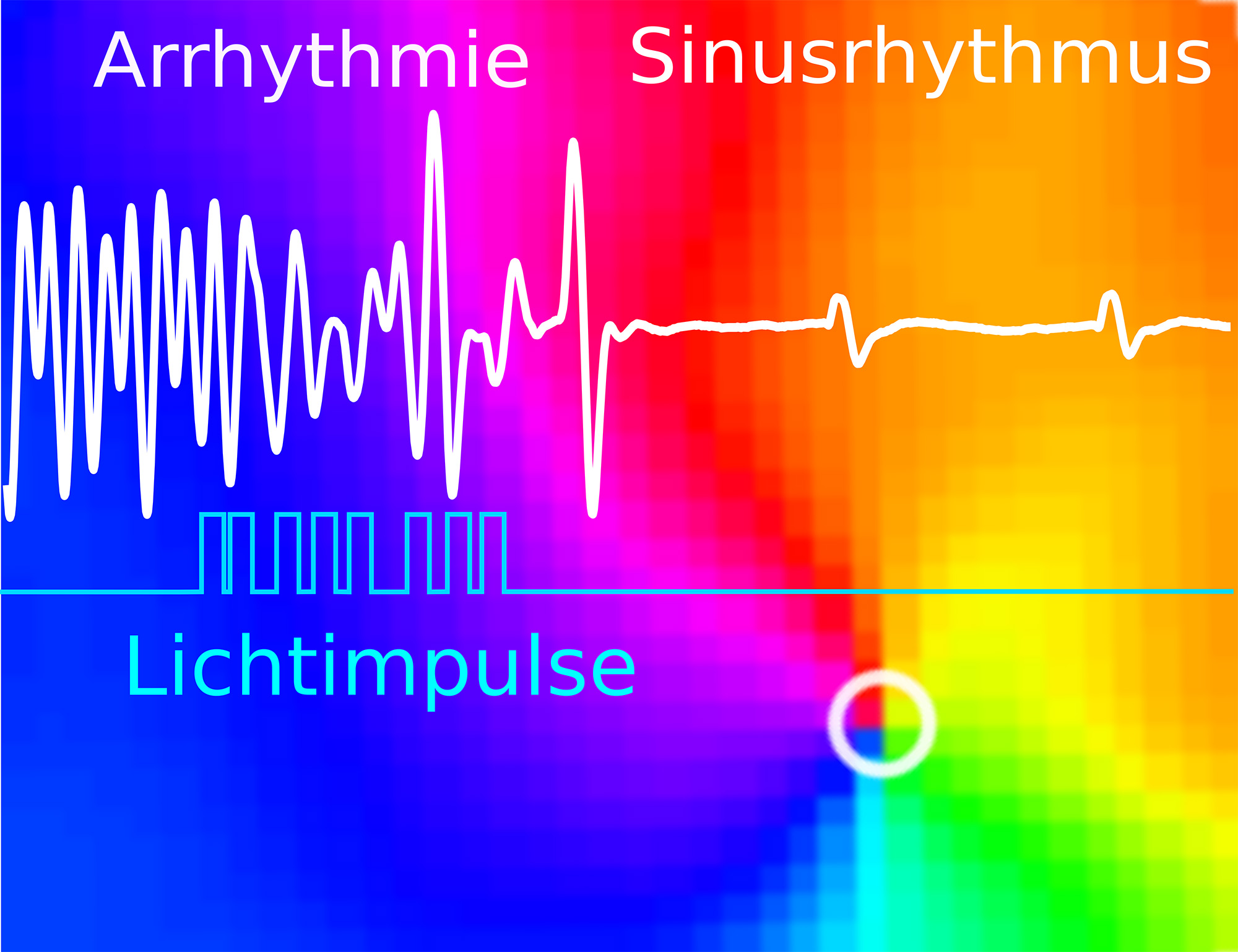 Voraussetzung für die Arbeit des Max-Planck-Teams war es, die Herzen der Versuchsmäuse genetisch so zu verändern, dass sie sich durch Lichtimpulse stimulieren lassen. Fachleute sprechen hier auch von Optogenetik. Um die Methode zu testen, wurde nun eine Sequenz optischer Lichtpulse mithilfe eines geschlossenen Regelkreises ausgelöst. Jeder Puls wird dabei als Reaktion auf die gemessene arrhythmische Aktivität ausgelöst. Mit diesem Stimulationsprotokoll konnte das Team Herzrhythmusstörungen wirksam kontrollieren und beenden – und dies selbst bei so niedrigen Energien, die das Herz nicht aktivieren, sondern nur dessen Erregbarkeit modulieren.