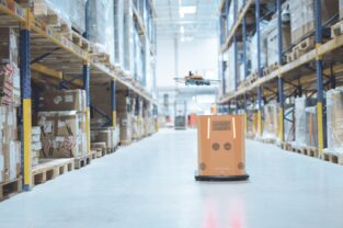 Ein Beispiel ist die Inventurdrohne InventAIRy XL vom Kasseler Unternehmen Doks Innovation (siehe Foto). Sie fliegt nachts vollautonom durch Lagerhallen und dokumentiert den Bestand. Selbstfahrende Gabelstapler sorgen derweil für Nachschub an Waren. Und um etwaige Abgänge kümmern sich Roboter, die alle Bestellungen aus den Regalen zusammensuchen und zur Packstation bringen.