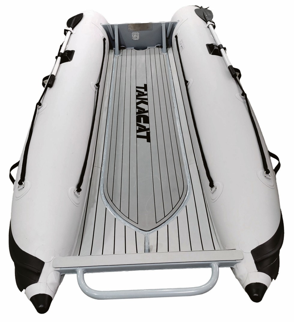 Der neuseeländische Ingenieur Greg Sowden hat aus den besten Aspekten von Schlauchboot, Festrumpfschiff und Katamaran ein neues Wasserfahrzeug entwickelt. Das Takacat 340 LXRib besteht aus zwei aufblasbaren Schlauch-Rümpfen sowie einem stabilen Aluminiumboden. Für die Schläuche verwendet der deutsche Hersteller für den europäischen Markt, Friedel Hacker, thermoplastisches Polyurethan (TPU). Der Alu-Boden soll dem Fahrzeug eine höhere Stabilität verleihen, als sie bei Schlauchbooten üblich ist. Zudem ist das Boot für den Transport per Tasche schnell in seine Teile zu zerlegen.