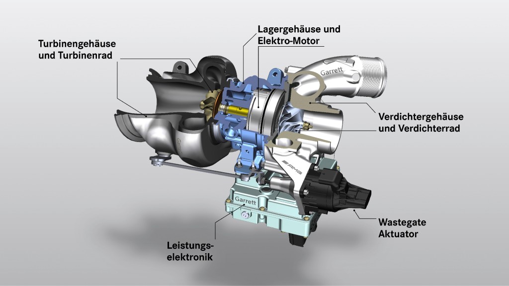 Heute fällt das sogenannte Turboloch deutlich sanfter aus, doch es gibt es noch. Dem möchte Mercedes-AMG aus Affalterbach Abhilfe schaffen. Ein elektrischer Abgasturbolader befindet sich im Endstadium der Entwicklung und soll in die nächste Fahrzeuggeneration Einzug halten. Die Technologie, die zusammen mit Partner Garrett Motion entwickelt wurde, stammt laut AMG direkt aus der Formel 1 und soll den Zielkonflikt lösen zwischen einem kleinen, schnell ansprechenden Lader, der jedoch eine vergleichsweise geringe Spitzenleistung erzielt, und einem großen Lader mit hoher Spitzenleistung, der wiederum erst verzögert anspricht.