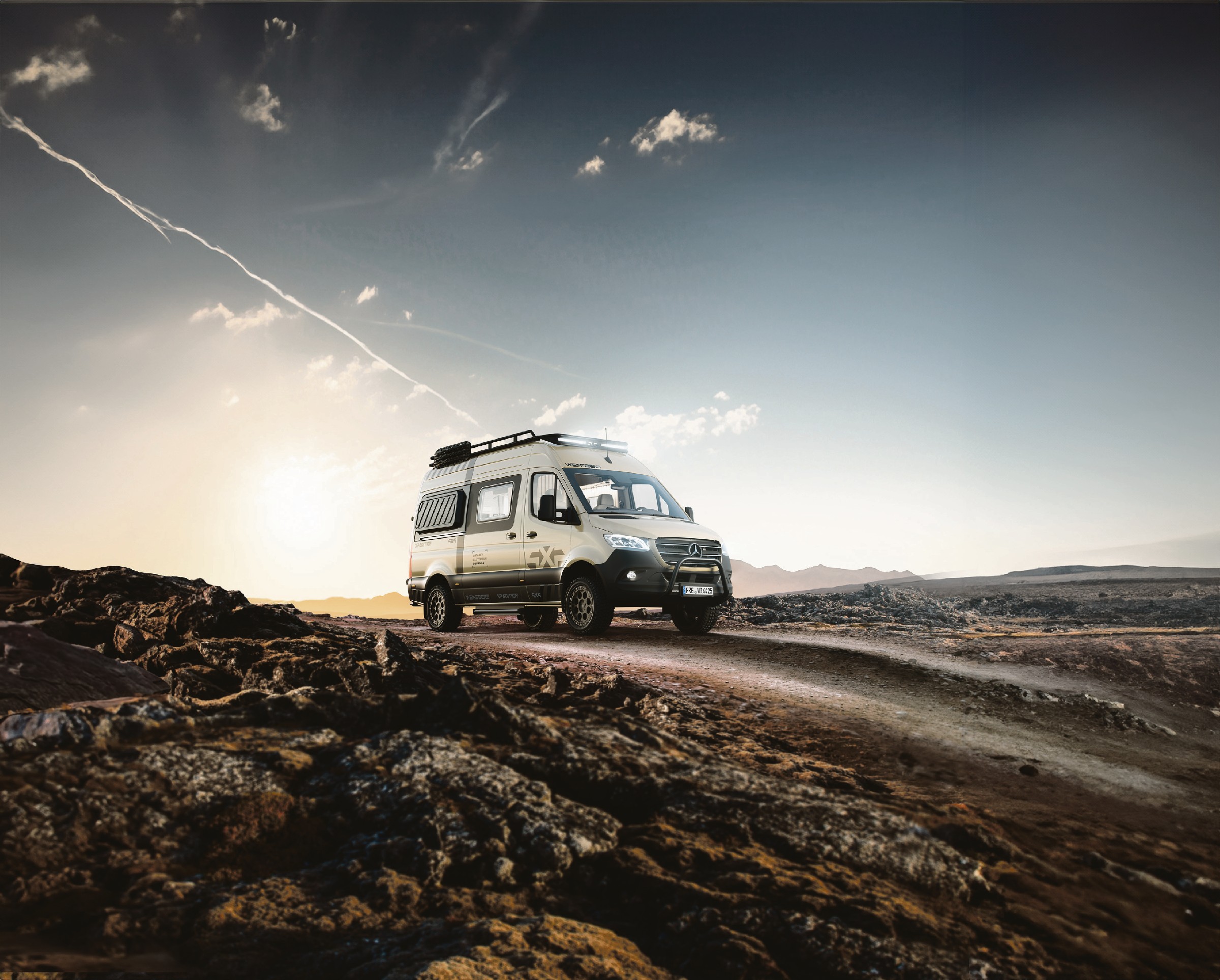 Mit dem robusten Reisemobil X-Pedition 600 MQ auf Mercedes-Sprinter-Basis will Weinsberg Abenteurer ansprechen. Das Fahrzeug wird bald in vier Expeditionsfarben verfügbar sein und besticht durch große Geländereifen, Dachgepäckträger, Frontschutzbügel sowie Reserverad und Gepäckträger am Heck. Das Bad enthält eine innovative Cleanflex-Trockentoilette. Allradantrieb und noch mehr Bodenfreiheit gibt es optional. Preise und Verfügbarkeit sind noch unbekannt.
