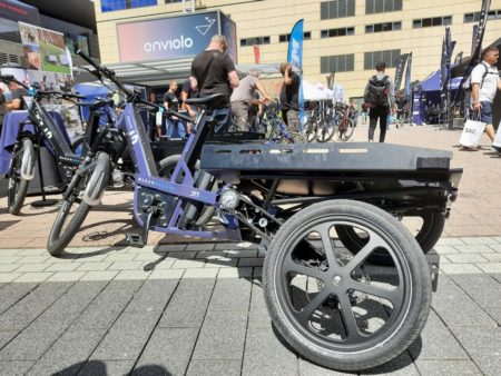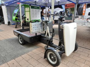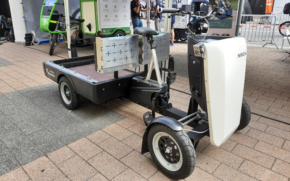 Damit lassen sich zwar technisch sehr unterschiedliche Bauformen umsetzen, aber gerade bei drei- und mehrrädrigen Modellen werden auf der Teststrecke enorme Unterschiede deutlich. Beispielsweise lässt das auf dem Außenstand des Koreanischen Antriebsherstellers Mando für Testfahrten bereitstehende Service-E-Bike Invelo:4 durch seinen Lenker und seinen Sattel ein fahrradähnliches Verhalten vermuten. Tatsächlich liegt der starre Rahmen aber eher wie ein Auto auf der Straße, während der Fahrer oder die Fahrerin in Kurven mit dem Oberkörper nach außen gedrückt wird. Das erzeugt ein ungewohntes Lenkverhalten. Ein Schalensitz kann den Fahrkomfort verbessern oder auch eine Neigetechnik, wie sie bei immer mehr Herstellern von mehrrädrigen Mobilen zu sehen ist.