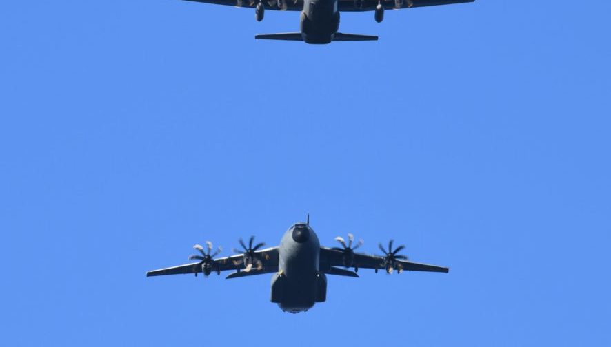 Ein Transportflugzeug des Typs Airbus A400M ist in dieser Woche erstmals mit einem elektronischen Infrarotschutzsystem ausgerüstet auf dem Stützpunkt Al-Asrak in Jordanien gelandet