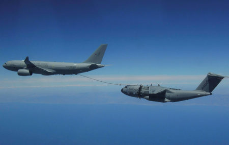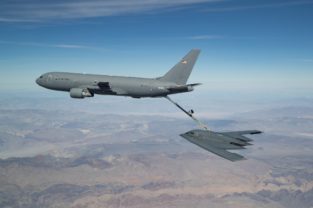Die KC-46 beruht auf dem Passagierjet Boeing 767, die US Air Force bestellte 179 Flugzeuge im Jahr 2011 für rund 30 Mrd. €. Es gibt auch Aufträge aus dem Ausland, so genehmigte Anfang März die US-Regierung die Ausfuhr von acht Maschinen im Wert von mehr als 2 Mrd. € an Israel. Airbus, das bei der Ausschreibung in den USA gegen Boeing unterlegen war, bietet mit dem MRTT eine Alternative an. Der Name Multi-Role Tanker Transport zeigt bereits, dass der Typ sowohl für Fracht- als auch für Tankmissionen umgerüstet werden kann. Bis jetzt sind davon 60 Maschinen bestellt und 41 ausgeliefert worden, so von der Luftwaffe, von Frankreich, Großbritannien und Südkorea. In der Version A3R verfügt der Airbus MRTT über ein vollautomatisiertes Betankungssystem, das den Ausleger mit Unterstützung von Sensoren mit dem Einfüllstutzen des zu betankenden Flugzeugs koppelt. An ähnlichen Verfahren wird auch in den USA gearbeitet (s. VDI nachrichten 4/5-20).