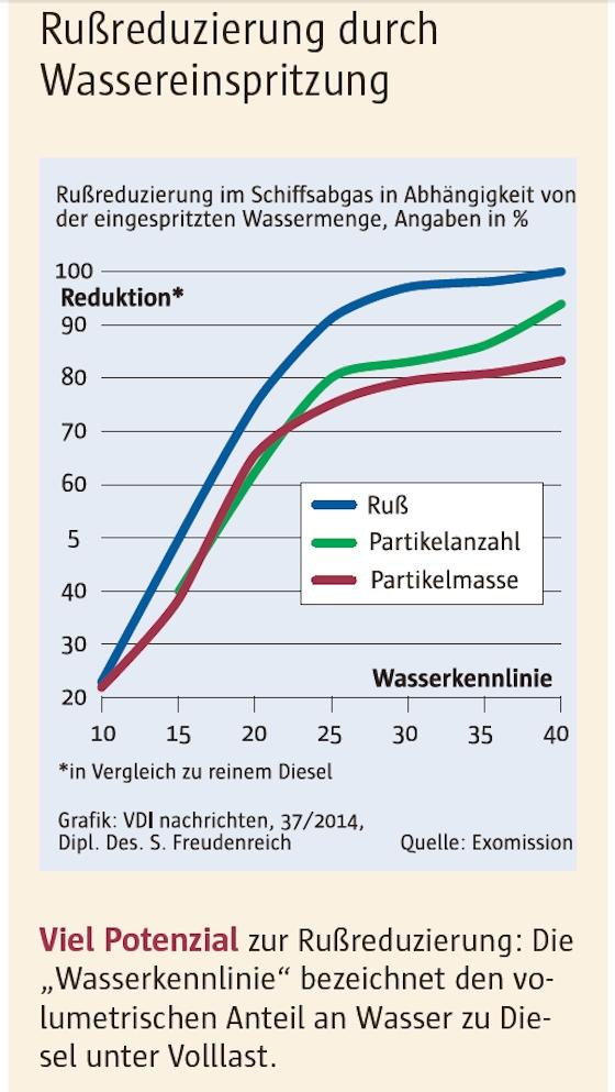 Bisher standen für die Schadstoffreduzierung bei Binnenschiffen lediglich die auch für Straßenfahrzeuge üblichen Mittel wie Partikelfilter und SCR-System zur Verfügung. Eine weitere, vielversprechende Option ist die Einspritzung von Wasser in den Brennraum. Zwar ist seit vielen Jahrzehnten bekannt, wie die Abgasemissionen – aber auch Verbrauch und Leistung – durch die zusätzliche Einspritzung von Wasser in den Brennraum von Otto- und Dieselmotoren beeinflusst werden könnten. Eine großflächige Anwendung gab es jedoch nicht. Als Hauptproblem galt, dass Kraftstoff und Wasser ohne chemische Zusätze keine stabile Emulsion bilden. Emulgatoren aber sind nicht nur teuer, sie können auch bei der Verbrennung Nebenprodukte bilden, die niemand wünscht.