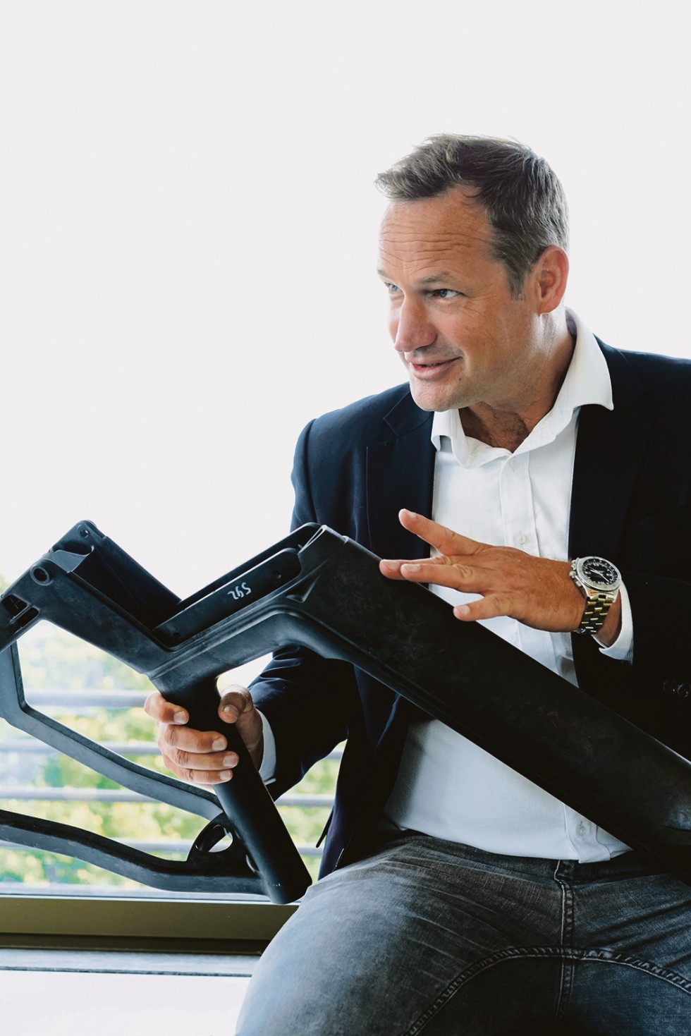 „Geplant ist es, diese Stückzahl mit einer Belegschaft von 50 bis 60 Personen zu fertigen, also bis zu 100 000 Rahmen pro Person“, rechnet der auf Kunststofftechnik spezialisierte Ingenieur vor. Dazu soll das Verfahren so aufgebaut sein, dass die Maschine vollautomatisiert produziert und das Personal dann nur noch die Maschinen überwachen und die Teile entnehmen muss. Müller weiter: „Wir haben aktuell 14 Maschinen, geplant sind insgesamt 20. Jede Maschine hat einen Output von 200 000 Rahmen pro Jahr.“
