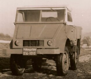 Als der Ingenieur Albert Friedrich (1902–1961) vor 75 Jahren die ersten Konstruktionsskizzen für ein innovatives Universalmotorgerät zeichnete, muss er einen Minischlepper mit den multiplen Fähigkeiten einer eierlegenden Wollmilchsau im Hinterkopf gehabt haben. Der Direktor der 1844 gegründeten Göppinger Werkzeugmaschinenfabrik Gebr. Boehringer GmbH trieb gemeinsam mit der Firma Erhard & Söhne in Schwäbisch Gmünd den Bau eines Vielzweckschleppers für die Land- und Forstwirtschaft energisch voran, sodass die ersten Exemplare im August 1948 auf der ersten Nachkriegsausstellung der Deutschen Landwirtschafts-Gesellschaft (DLG) in Frankfurt präsentiert werden konnten. 11 230 Mark kostete das knuffige Gefährt, das einem hochgesetzten Jeep mit Stoffverdeck und verlängerter Ladefläche ähnelte und von einem lediglich 18,5 kW starken Dieselmotor aus dem Personenwagenprogramm von Mercedes-Benz angetrieben wurde, aber über Allradantrieb mit Untersetzungsgetriebe verfügte. Noch auf dem Messestand konnte Boehringer die ersten 150 Bestellungen verbuchen.