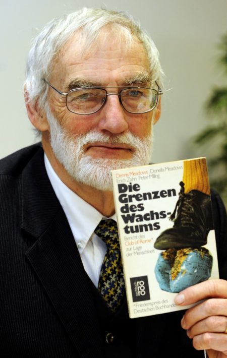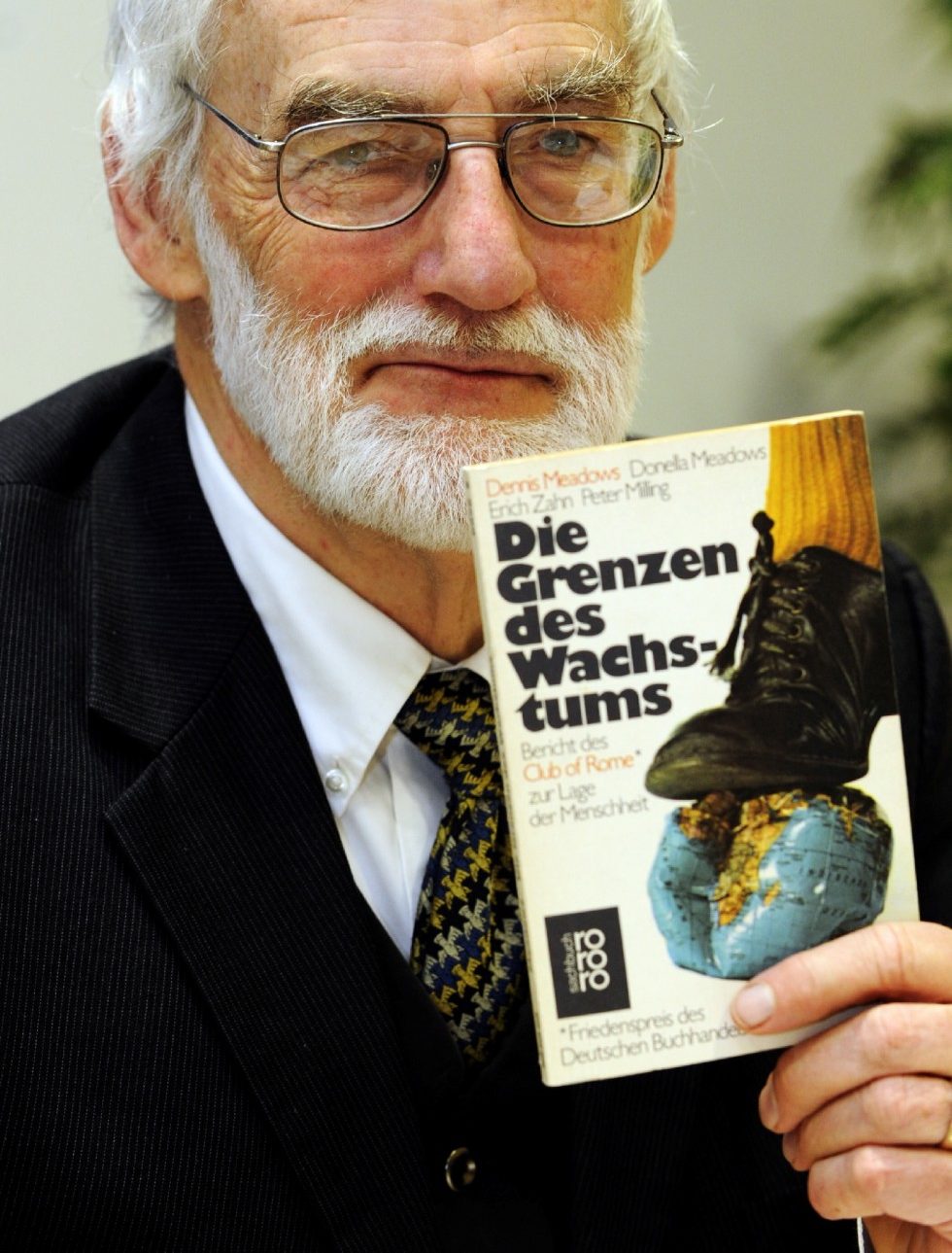 Die Studie “Die Grenzen des Wachtums“ erschien Anfang März vor 50 Jahren. Auf dem Foto schaut der US-amerikanische Oekonom und Buchautor Dennis Meadows in die Kamera. Er war am 27. Januar 2010 in Bremerhaven im Klimahaus bei einer Pressekonferenz zur Gruendung der "Deutschen KlimaSiftung" dabei und hatte eine deutsche Fassung seines Buchs "Die Grenzen des Wachstums" mitgebracht. Meadows ist Leitautor der Studie, die im März 1972 mit dem Titel „The Limits to Growth. A Report for the Club of Rome’s Project on the Predicament of Mankind“ veröffentlicht wurde. Dies geschah auf zwei Konferenzen, eine am 2. März 1972 an der Smithonian Institution in der US-Hauptstadt Washigton DC, eine andere im Rahmen des St. Gallen Symposiums in der Schweiz. Meadows, seine Frau Donella H. Meadows und der Norweger Jørgen Randers loteten am Massachusetts Institute of Technology in Boston mit Hilfe von Computersimulationen im Auftrag des Club of Rome aus, wie die Zukunft der Weltwirtschaft aussehen könnte. Die deutsche Volkswagenstiftung finanzierte sie mit 1 Mio. DM. swe