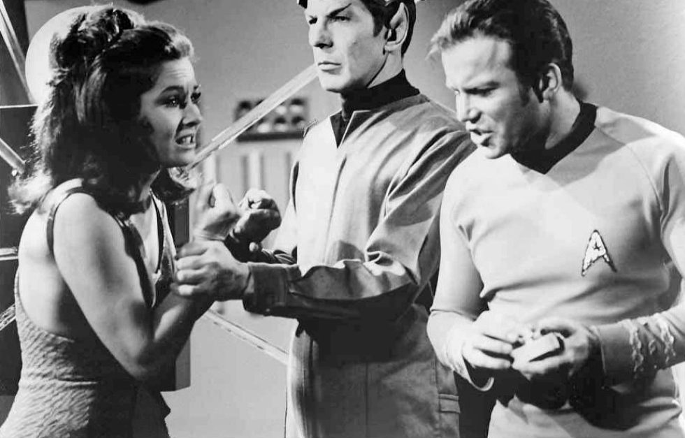 „Der Weltraum, unendliche Weiten...“, als dieser Text im deutschen Fernsehen zum ersten Mal erklang, war das Phänomen „Star Trek“ in den USA schon fast vorbei. Dort lief die TV-Serie von 1966 bis 1969. Das ZDF ließ 1972 gerade einmal 26 Folgen synchronisieren und strahlte diese als „Raumschiff Enter‧prise“ ab dem 27. Mai 1972 samstags im Vorabendprogramm aus – pikanterweise in Konkurrenz zur Sportschau der ARD, was zu manchem Familienzwist führte. Da der Sender mit den Abenteuern der Crew von Captain Kirk (rechts im Bild) das junge Publikum adressierte, wurden fast alle Folgen gekürzt und zum Teil sinnentstellend synchronisiert. Zum Phänomen wurde Star Trek viel später mit den Folgeserien ab 1987 und den Kinofilmen. Das Original war erst ab 1985 im Privatsender Sat.1 zu sehen. jjdb