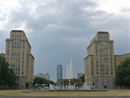 „Die Spatzen vom Alex, die pfeifen es laut, hier wird unser neues Berlin aufgebaut!“ Die DDR-Propagandahymne beschallte die Großbaustelle der ‧Stalinallee in Ostberlin. Im Februar 1952 war die Grundsteinlegung für die 2 km lange Prachtmagistrale. Die pompösen Wohnblöcke sollten mit großzügigen Zimmern, Müllschluckern, Einbauküchen und Fahrstühlen demonstrieren, wie der Sozialismus den Lebensstandard der Arbeiterklasse verbessert. Doch die Arbeiter der Stalinallee waren es, die beim Aufstand vom 17. Juni 1953 die Großdemonstration gegen die stalinistische Diktatur anführten. Die Rote Armee schlug die Erhebung nieder, nach einigen Jahren verschwand der Straßenname und das Stalin-Denkmal. Geblieben sind die fast 2600 Wohnungen, die in den 1990er-Jahren an Immobilienfonds verkauft wurden. pst