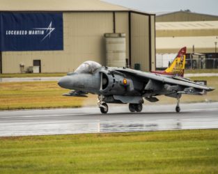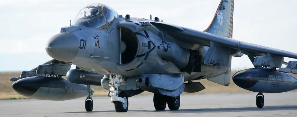 Eine McDonnell Douglas AV-8B Harrier II der US-Marines. Die ursprüngliche Version wurde in den USA weiterentwickelt und ist erheblich leistungsstärker. Diese Version wurde auch von Großbritannien angeschafft, nachdem sich die britische Luftfahrtindustrie die Weiterentwicklung des Originals nicht leisten konnte.