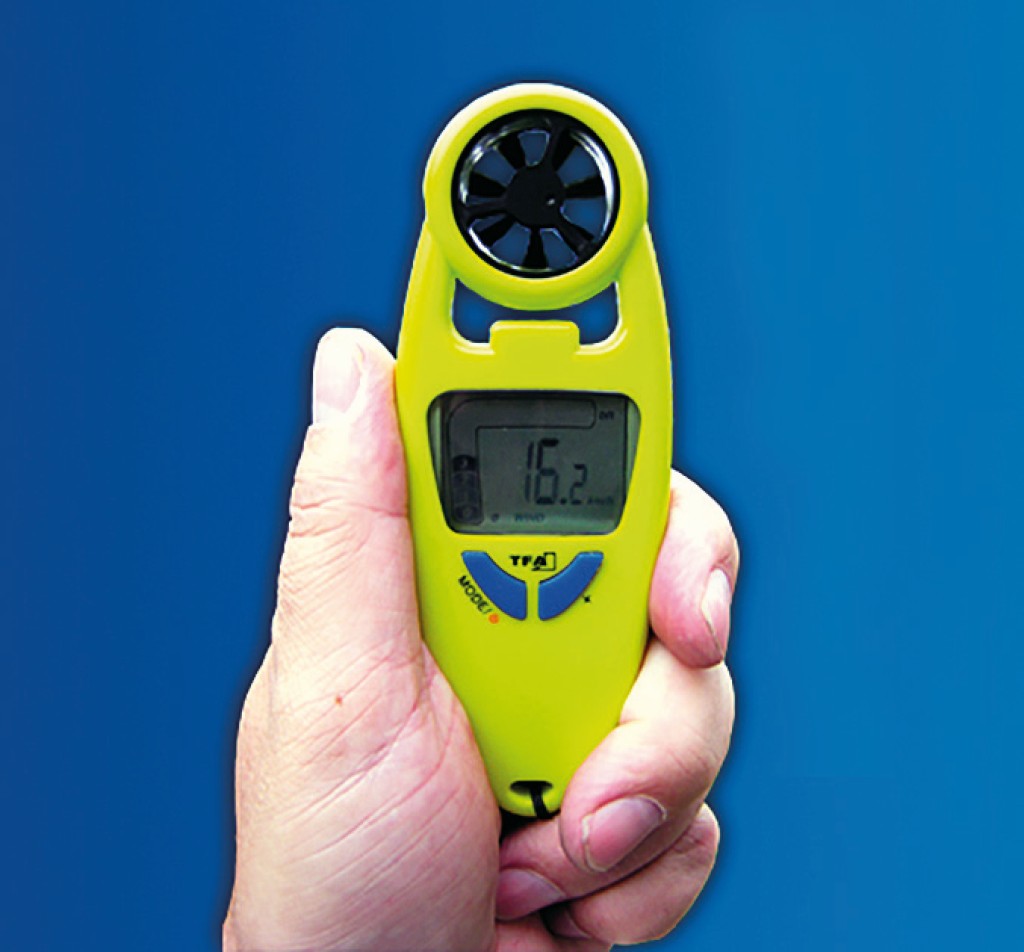 Mit diesem Anemometer lässt sich bereits vor dem Start feststellen, welcher Drachen heute am besten steigt. Er ermittelt Windstärken bis 12 Bft. mit einer Fehlertoleranz von unter 5 % und zeigt Windstärke, Windgeschwindigkeit und Temperatur auf dem LCD-Display an. Die Temperaturanzeige berechnet zusätzlich noch die gefühlte Temperatur (Windchill); die Windgeschwindigkeit kann wahlweise in km/h, m/s, mph oder Knoten angegeben werden. Dank einschaltbarer Hintergrundbeleuchtung stehen die Informationen auch bei schlechten Lichtverhältnissen zur Verfügung. Das Gerät ist spritzwassergeschützt, hat einen Halstragegurt und ein Etui aus Neopren. Preis: 59,90 € inkl. 16 % MWSt.