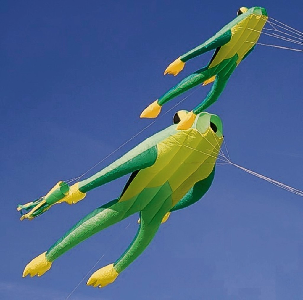 Im Kultfilm „Magnolia“ von Paul Thomas Anderson regnet es in einer Schlüsselszene Frösche vom Himmel, möglicherweise als Anspielung auf eine Bibelstelle aus dem zweiten Buch Mose, Exodus 8:2. Und wer behauptet denn, dass Frösche nicht fliegen können? Fritz schafft das. Als Fritz the frog green gibt es das Flugwunder gleich in zwei Größen, der kleine Drachen misst insgesamt 210 cm, der große erreicht sogar eine Länge von 480 cm. Beide Modelle sind so gearbeitet, dass sie ohne Stäbe auskommen. Mit ihrem stabilen Flugverhalten sind die Tierdrachen recht einfach zu fliegen. Schnur und Spule gibt es inklusive. Preis: 59,90 € inkl. 16 % MWSt.