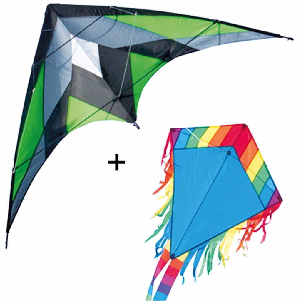 Wer zum Familienausflug nur ein einziges Paket mitnehmen will, hat mit dem Set Big Green je ein Spielgerät für Jung und Alt dabei. Der klassische Kinderdrachen Eddy (s. Beschreibung li) ist bei 1 Bft. bis 5 Bft. für Kinder ab 3 Jahren geeignet. Der Lenkdrachen Katana mit einer Spannweite von 175 cm und einer Standhöhe von 90 cm ist aus Ripstop-Polyester gefertigt und wird durch Fiberglasstäbe stabilisiert. Er bevorzugt einen mittleren Wind zwischen 2 Bft. und 6 Bft, dann schneidet er in gleichförmiger Bahn die Luft, fliegt nie zu schnell und ist einfach zu steuern. Auch bei böigem Wind bleibt er immer leicht beherrschbar. Zwei Spulen mit jeweils 25 m Schnur sind mit im Paket. Preis: 42,99 € inkl. 16 % MWSt.