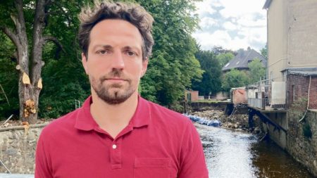 Patrick Haas ist mit seinem Stab bei der örtlichen Krankenkasse untergekommen. An der Tür im ersten Stock ein handgeschriebener Zettel: Bürgermeister. Der sitzt in Jeans und rotem Poloshirt am Rechner. Dass er seit dem Unwetter im Dauereinsatz ist, sieht man dem leicht gebräunten Enddreißiger mit Fitnessarmband nicht an. Haas (SPD) ist seit drei Jahren im Amt. Erst kam die Corona-Pandemie und jetzt ein 10 000-jähriges Hochwasser. „Normale Zeiten hatte ich nie.“